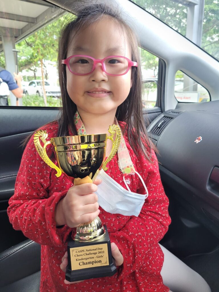 At just kindergarten age, Kwee Shin Yee ranked 1st in the Girls’ category and 3rd overall at the 2022 National Day Chess Challenge.
